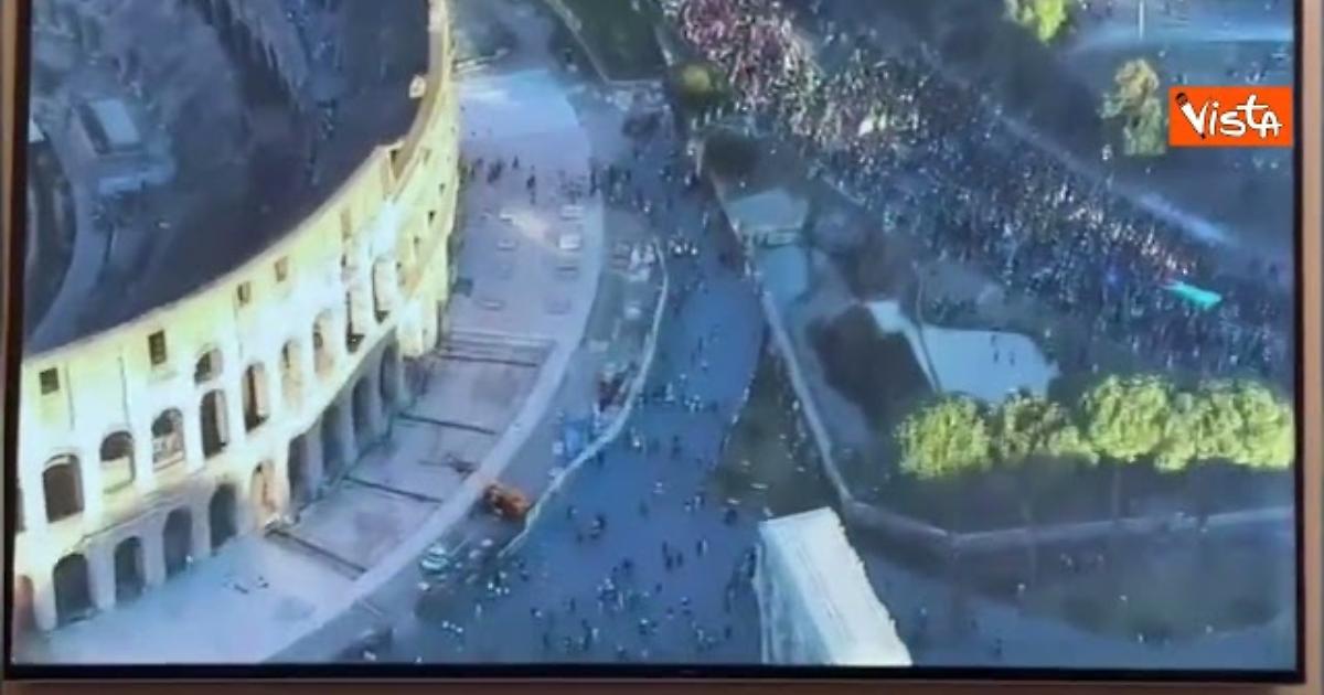Corteo pro Gaza a Roma, migliaia di manifestanti al Colosseo. Le mmagini dall'alto