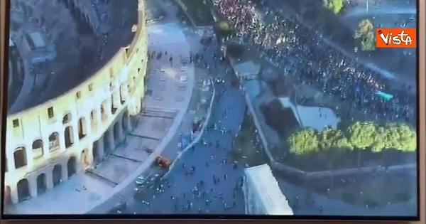 La manifestazione pro Gaza a Roma ripresa dall'alto dai velivoli delle forze dell'ordine. In migliaia sono scesi in piazza all'indomani dello sciopero generale per la Flotilla.
