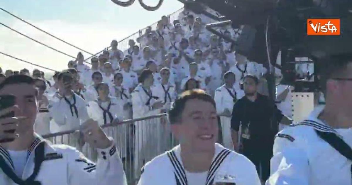 In occasione del 250esimo anniversario della Marina americana, Donald e Melania Trump hanno preso parte alla cerimonia “Titans of the Sea” a bordo della portaerei USS George H.W. Bush. Durante l’evento, la coppia presidenziale ha assistito a una maestosa esibizione delle forze navali, con manovre aeree, dimostrazioni dei Navy SEAL, lanci di missili e fuoco d’artiglieria sull’Atlantico. All'arrivo sul palco sul ponte della portaerei Trump ha ballato la sua iconica danza.