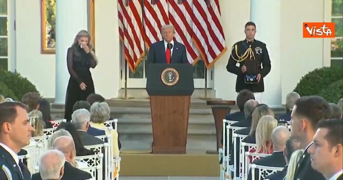 l presidente degli Stati Uniti ha consegnato la più alta onorificenza civile americana alla vedova dell'attivista conservatore ucciso lo scorso 10 settembre durante un evento alla Utah Valley University. Trump, nel corso di una cerimonia ufficiale, ha definito Kirk un "martire per la verità e la libertà"