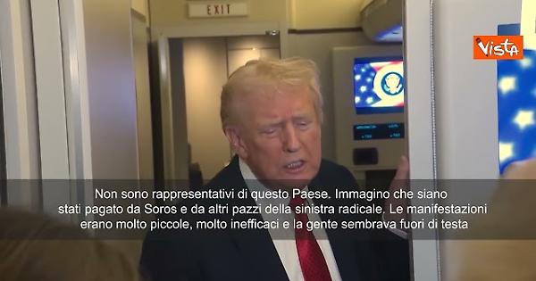 "Non sono rappresentativi di questo Paese. Immagino che siano stati pagato da Soros e da altri pazzi della sinistra radicale. Le manifestazioni erano molto piccole, molto inefficaci e la gente sembrava fuori di testa. Quando guardi quelle persone, quelle non sono rappresentative della gente del nostro Paese. E comunque, non sono un re. Non sono un re. Mi impegno a fondo per rendere grande il nostro Paese. Questo è tutto. Non sono affatto un re", così Trump risponde ai cronisti a bordo dell'Air Force One sulle proteste contro di lui andate in scena nelle grandi città americane intitolate "No Kings" dai suoi oppositori.