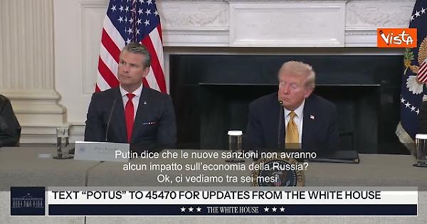 "Putin dice che le nuove sanzioni non avranno alcun impatto sull'economia della Russia? Ok, ci vediamo tra sei mesi", così Trump alla casa Bianca parlando con i cronisti.