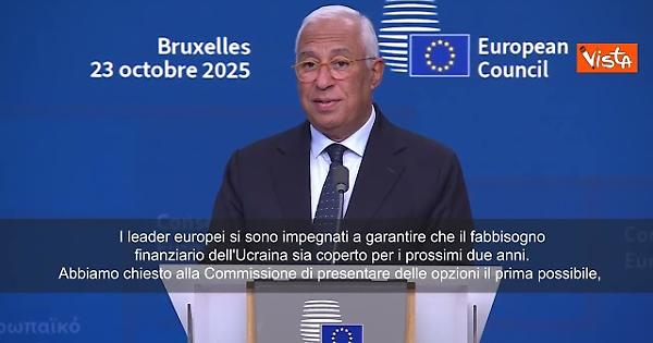 "I leader europei si sono impegnati a garantire che il fabbisogno finanziario dell'Ucraina sia coperto per i prossimi due anni. Abbiamo chiesto alla Commissione di presentare delle opzioni il prima possibile, in modo che l'Ucraina disponga delle risorse necessarie per continuare a difendersi e lottare per una pace giusta e duratura nel 2026 e nel 2027, se necessario. La Russia dovrebbe prenderne atto", lo ha dichiarato il presidente del Consiglio Europeo Antonio Costa.