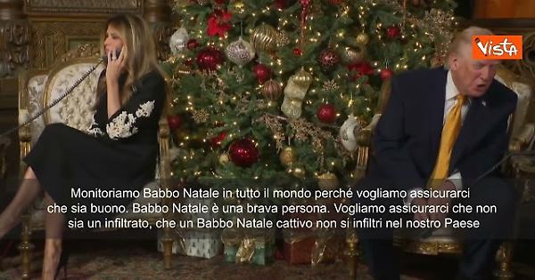 "Monitoriamo Babbo Natale in tutto il mondo perché vogliamo assicurarci che sia buono. Babbo Natale è una brava persona. Vogliamo assicurarci che non sia un infiltrato, che un Babbo Natale cattivo non si infiltri nel nostro Paese", così Trump al telefono con un bambino durante la sua visita al Comando di difesa aerospaziale del Nordamerica (Norad) che traccia il viaggio di Babbo Natale.