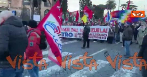 È partito da Piazza dell'Esquilino, a Roma, i corteo di solidarietà al Venezuela dopo l'intervento degli Stati Uniti e la cattura di Nicolas Maduro. Il corteo, organizzato da sindacati di base, associazioni e movimenti tra i quali Potere al Popolo, Usb, Movimento studenti palestinesi, Arci Roma e Rete dei Comunisti, si dirige verso l'Ambasciata degli Stati Uniti in via Vittorio Veneto. Tra le bandiere che sventolano alla manifestazione, oltre a quelle delle associazioni partecipanti e del Venezuela, quelle di Cuba, Palestina e One Piece, il cartoon sui pirati diventato simbolo della Flotilla.