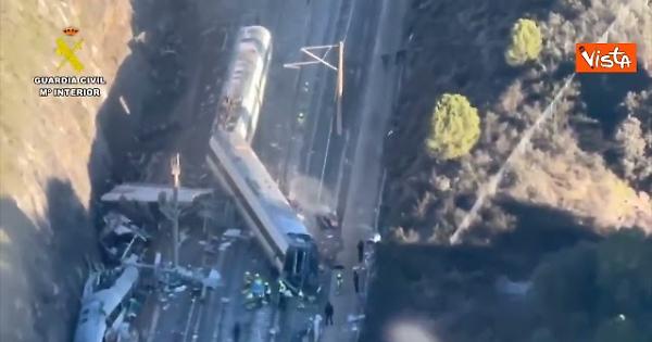È di 39 morti il bilancio provvisorio del deragliamento che ha coinvolto due treni dell'alta velocità Madrid-Andalusia, all'altezza di Adamuz (Cordova). Il presidente della regione dell'Andalusia Juanma Moreno ha affermato che i corpi delle vittime dell'incidente ferroviario sono stati trovati "a centinaia di metri di distanza" sbalzati dai finestrini a causa dell'impatto "incredibilmente violento" dell'incidente. Anche il macchinista "è stato trovato a decine di metri dalla cabina". Ecco e immagini aree del disastro girate dall'elicottero della Guardia Civil dopo l'incidente.