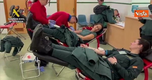 Gli allievi della Guardia Civil donano il sangue per aiutare i feriti del deragliamento di Adamuz, dove due treni dell'alta velocità spagnola si sono scontrati causando 41 vittime, 43 dispersi e 150 feriti.