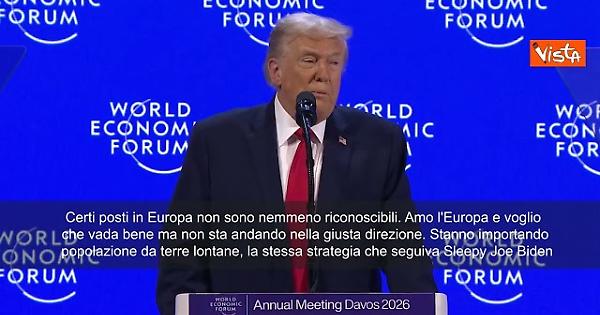 "Certi posti in Europa non sono nemmeno riconoscibili. Amo l'Europa e voglio che vada bene ma non sta andando nella giusta direzione. Stanno importando popolazione da terre lontane, la stessa strategia che seguiva Sleepy Joe Biden", lo ha detto Donald Trump a Davos.