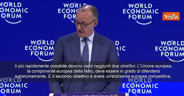 “Il nostro destino è nelle nostre mani. È nella nostra responsabilità e libertà dargli forma. Abbiamo davanti a noi questo compito storico, e la Germania vuole indirizzarlo giocando un ruolo chiave. Un mondo di grandi potenze è la nuova realtà. L'Europa ha ricevuto il messaggio, e lo ha ricevuto anche la Germania. Dobbiamo essere all'altezza della sfida e lo saremo. Il mio governo farà il suo dovere con un'ambiziosa agenda che ruota su sicurezza, competitività e unità europea. Il più rapidamente possibile devono venir raggiunti due obiettivi: L'Unione europea, la componente europea della Nato, deve essere in grado di difendersi autonomamente. E il secondo obiettivo è avere un'economia europea competitiva. Le due cose vanno di pari passo: capacità di difesa e competitività sono due facce della stessa medaglia. È su questo che stiamo lavorando. Sul versante europeo della Nato, dobbiamo fare di più per la nostra capacità di difesa. Su questo punto ha ragione persino il presidente americano quando ce lo ripete da tempo, del resto lo dicevano anche i suoi predecessori. Ora lo stiamo facendo”. Lo ha detto il cancelliere tedesco Friedrich Merz nel suo intervento al World Economic Forum a Davos.