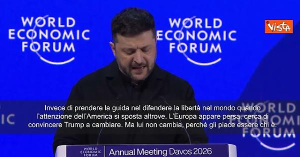 "Invece di prendere la guida nel difendere la libertà nel mondo quando l’attenzione dell’America si sposta altrove. L’Europa appare persa, cerca di convincere Trump a cambiare. Ma lui non cambia, perché gli piace essere chi è", così Zelensky a Davos.