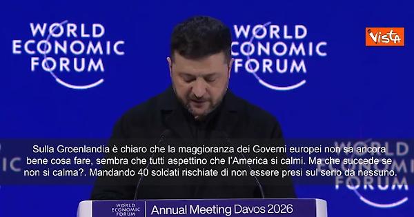 "Sulla Groenlandia è chiaro che la maggioranza dei Governi europei non sa ancora bene cosa fare, sembra che tutti aspettino che l’America si calmi. Ma che succede se non si calma?. Mandando 40 soldati rischiate di non essere presi sul serio da nessuno", così Zelensky a Davos.