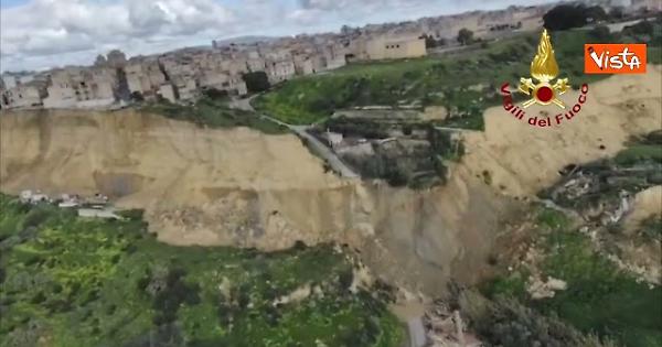 Le immagini del sopralluogo aereo dei vigili del fuoco documentano l’estensione della frana a Niscemi, in provincia di Caltanissetta, innescata dalla violenta ondata di maltempo che ha colpito la Sicilia.