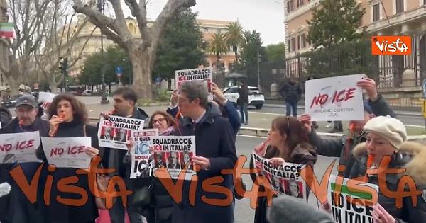Un flash mob davanti all’ambasciata americana a Roma per protestare contro la presenza dell’Ice durante i Giochi di Milano-Cortina. L’iniziativa promossa da +Europa e hanno già aderito Possibile, Partito socialista italiano, Volt Europa, Gaynet, Federazione Giovani Socialisti e altre realtà civiche e politiche.