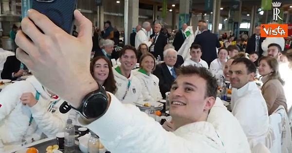 Il presidente della Repubblica Sergio Mattarella ha pranzato con le atlete e gli atleti della squadra italiana alla mensa del Villaggio Olimpico, alla vigilia dei Giochi di Milano Cortina. Il capo dello Stato, dopo aver rivolto un saluto agli azzurri e ai tecnici della delegazione italiana, si è seduto a tavola accanto ai campioni tra cui Arianna Fontana e Pietro Sighel, entrambi pattinatori di short track, la prima anche portabandiera, e si è messo in posa per un selfie di gruppo. Con lui al tavolo tra gli atleti anche la figlia Laura. Dopo lo scatto di rito, con il presidente del Coni, Luciano Buonfiglio, Mattarella ha salutato nuovamente gli atleti italiani augurandogli buona fortuna per le competizioni.