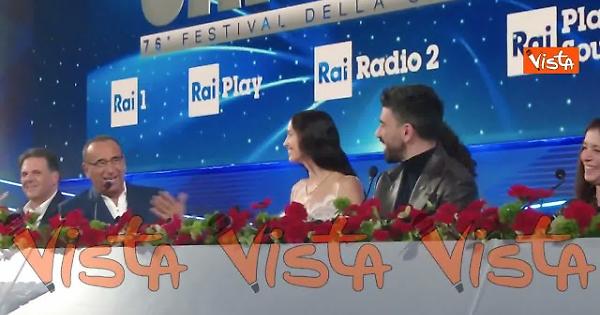 “Sono felicissimo di avere al mio fianco quella che io considero una delle donne più belle del mondo. E se fino a questo momento l'avevo vista soltanto in foto, è ancora più bella di quello che è nelle foto. ” Così il conduttore Carlo Conti durante la conferenza stampa.