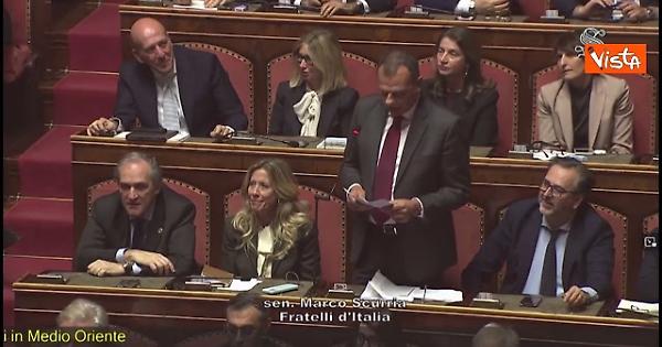 "La settimana scorsa c'è stato un evento storico a suo modo: l'Italia del rugby ha battuto l'Inghilterra al Sei Nazioni e su questo il Times si è interrogato e ha interrogato: le vittorie sportive arrivano spesso quando le nazioni sono in espansione...". Lo ha detto Marco Scurria di FdI in Senato, dopo l'informativa di Meloni sull'Iran. Di fronte alle contestazioni delle minoranze, ha commentato: "Non l'ho scritto io, è il Times. Capisco che avete un po' di problemi a leggere la stampa internazionale".