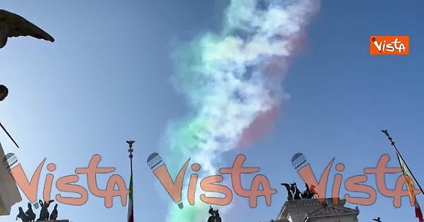 Le Frecce Tricolore hanno sorvolato l’Altare della Patria a Roma, in occasione della Giornata dell’Unità Nazionale, della Costituzione, dell’Inno e della Bandiera. La cerimonia ha previsto la deposizione di una corona d’alloro da parte del Presidente della Repubblica Sergio Mattarella. Presenti, tra gli altri, la Presidente del Consiglio Giorgia Meloni, il Presidente del Senato Ignazio La Russa e il Ministro della Difesa Guido Crosetto.