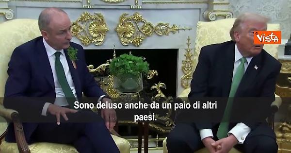 "Senta... è fortunato che io esista. È tutto quello che posso dire. Perché se permetti a paesi malati e dementi — e lo sono, dementi — di avere armi nucleari, tutti in tutto il mondo dovrebbero essere molto grati. E sono deluso dalla NATO, molto deluso; sono deluso anche da un paio di altri paesi. Ma dovrebbero essere molto grati che questo gruppo di persone la pensi come noi. Perché se a un paese come l'Iran fosse permesso di avere il potere di un'arma nucleare... se non li avessimo fermati... io li ho fermati due volte", così il Presidente degli Stati Uniti Donald Trump in una conferenza stampa alla Casa Bianca.
