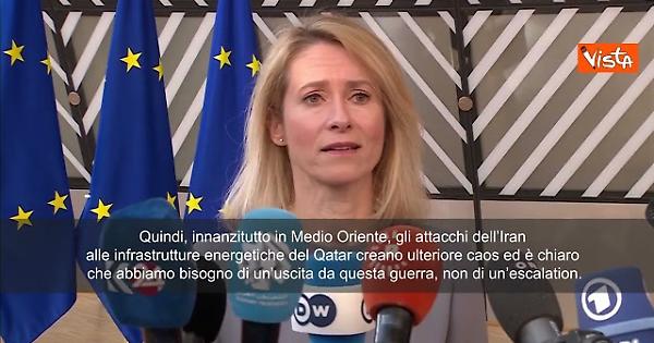 "Naturalmente oggi abbiamo un lungo ordine del giorno, argomenti molto importanti come l'energia. E il mercato unico, ma per quanto mi riguarda è ovviamente ciò che sta accadendo in Medio Oriente e in Ucraina. Quindi, innanzitutto in Medio Oriente, gli attacchi dell’Iran alle infrastrutture energetiche del Qatar creano ulteriore caos ed è chiaro che abbiamo bisogno di un’uscita da questa guerra, non di un’escalation", lo ha detto l'Alta rappresentante dell'Unione per gli affari esteri Kallas al Consiglio Ue .