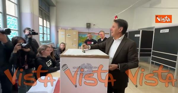 Il voto del leader del M5s Giuseppe Conto al Referendum sulla Giustizia. Conte ha votato a a Roma al seggio elettorale a via Giulia.
