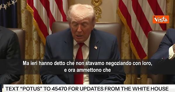 "Posso solo dire questo: vogliono fare, vogliono fare... e probabilmente ho danneggiato un po' la nostra negoziazione, dando loro un po' di slancio per dire 'beh, vorrei che non l'avesse detto'. Ma ieri hanno detto che non stavamo negoziando con loro, e ora ammettono che stavamo negoziando con loro. Quindi, vogliono fare un accordo. La ragione per cui vogliono fare un accordo è che gli abbiamo letteralmente spaccato il c*lo", così il Presidente degli Stati Uniti Donald Trump in una conferenza stampa alla Casa Bianca.