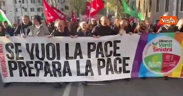 Alla manifestazione No Kings a Roma, Avs ha esposto uno striscione: 'Se vuoi la pace prepara la pace'.