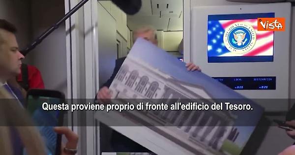 "Ho appena ricevuto questi disegni dagli architetti. Molti stanno dicendo che la sala da ballo è bellissima. Da 150 anni si voleva costruire una sala da ballo alla Casa Bianca. E anche altri presidenti l'hanno voluta. Quando arrivano dignitari, come il presidente Xi della Cina o chiunque altro, abbiamo sale da ballo molto piccole", così il Presidente degli Stati Uniti Donald Trump in una conferenza stampa sull'Air Force One.