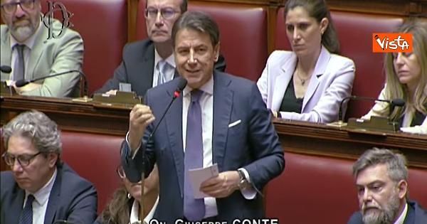 "Lei ha giurato sulla Costituzione. Crosetto ha detto una cosa giusta per una volta: ha detto che il problema di Trump è che è circondato da collaboratori non coraggiosi. Nessuno riesce o osa contraddire il capo. È ancora più grave quando non viene contraddetto il capo da una leader di un paese del G7. La sua subalternità è ignobile. Lei sta contribuendo, attenzione, a distruggere il diritto internazionale.", così il presidente del Movimento 5 Stelle intervenuto in Aula alla Camera dopo l'informativa del Presidente del Consiglio Giorgia Meloni sull'azione del Governo.