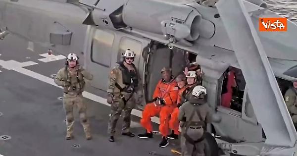 Sorrisi radiosi e grande emozione sul ponte della nave: gli astronauti NASA Christina Koch e Victor Glover sono sbarcati sani e salvi dopo lo splashdown della capsula Orion della missione Artemis II.
