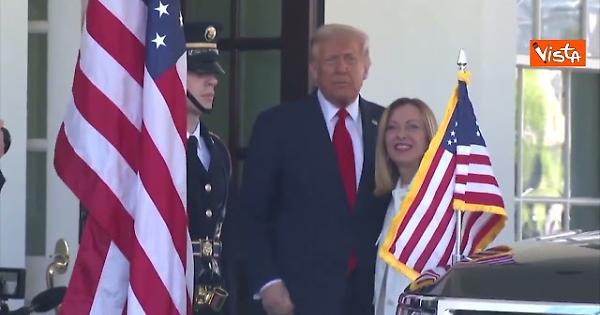 "È una grande persona". Lo ha detto il Presidente degli Stati Uniti, Donald Trump, accogliendo la premier Meloni al suo arrivo alla Casa Bianca nell'aprile 2025.