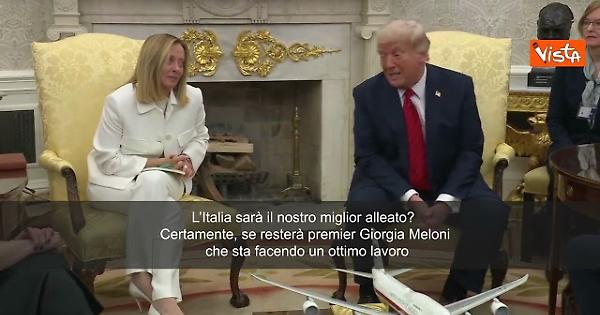 “L’Italia sarà il nostro miglior alleato? Certamente, se resterà premier Giorgia Meloni che sta facendo un ottimo lavoro”. Così il Presidente Usa Donald Trump dopo il vertice con la premier italiana Giorgia Meloni, rispondendo a una domanda dell'Agenzia Vista, che citava anche le formiche durante la visita dell'aprile 2025.