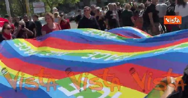 Si è svolta questa mattina a Roma la manifestazione per l'81° anniversario della Liberazione dal nazifascismo. Durante il corteo i manifestanti hanno sventolato una gigantesca bandiera della pace.