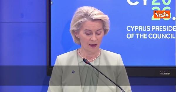 "In primo luogo, ho voluto riaffermare la nostra assoluta solidarietà con i nostri partner nella regione. Una lezione fondamentale delle ultime settimane è che la sicurezza è indivisibile. Non si può avere stabilità nel Medio Oriente o nel Golfo mentre il Libano è in fiamme", così la Presidente della Commissione Europea Ursula Von Der Leyen, in un punto stampa a margine della Riunione Informale dei capi di Stato Ue a Cipro.